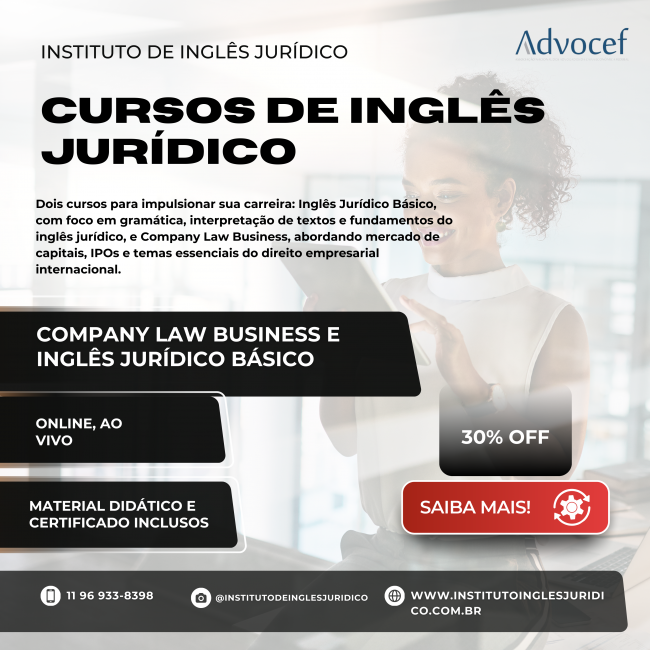 Inglês jurídico com 30% de desconto para associados