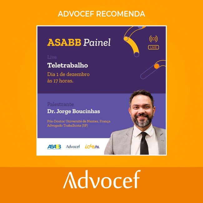 Debate discutirá o home office à luz do Direito do Trabalho A presidente da Associação Nacional dos Advogados da Caixa Econômica Federal (Advocef), Anna Claudia de Vasconcellos, participa na próxima terça-feira (1) do ASABB Painel sobre teletrabalho. O evento conta com a participação do doutor em direito trabalhista Jorge Boucinhas e será transmitido, ao vivo,…