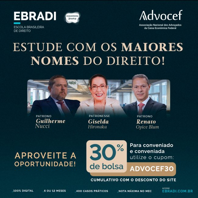 A Advocef, em parceria com a Escola Brasileira de Direito (EBRADI), garantem um desconto adicional cumulativo de 30% OFF em todos os cursos disponibilizados no site. Para garantir o benefício, o associado deve aplicar o cupom promocional: ADVOCEF30, diretamente no carrinho de compras do site. Entre as diversas opções, a EBRADI oferece pós-graduação em Advocacia Trabalhista, Direito Negocial e…