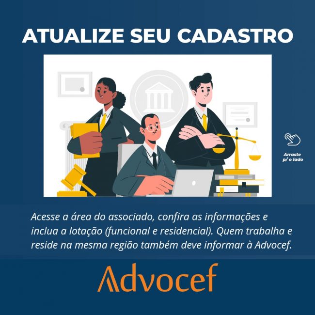 APP da Advocef ainda não contempla todas as informações necessárias A Advocef informa a todos os associados que a atualização das informações pessoais no banco de dados da entidade deve ser feita exclusivamente pelo endereço areadoassociado.advocef.org.br, pois o APP da ainda não possibilita a inclusão total dos dados necessários. Dessa forma, quem já promoveu as…