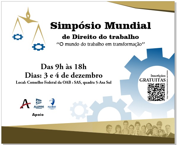 O Simpósio Mundial de Direito do Trabalho será realizado na próxima segunda-feira (3) e terça-feira (4), na sede do Conselho Federal da OAB, em Brasília