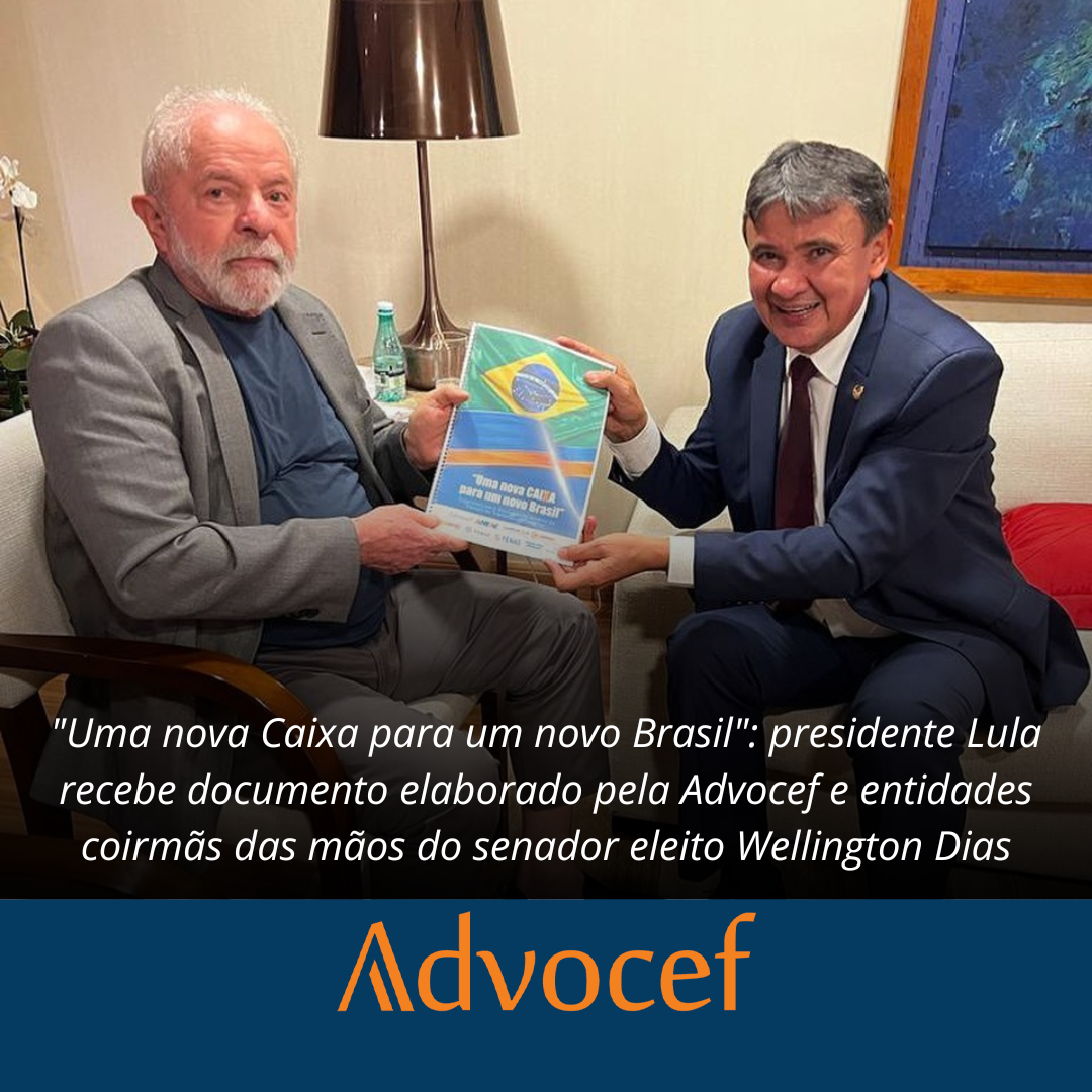 Conforme prometido, o senador eleito Wellington Dias (PT-PI) entregou ao presidente Lula, o documento elaborado em conjunto pela Advocef, e as demais entidades coirmãs: Fenag, Fenae, Aneac, AudiCaixa, Social Caixa, Contraf, Contec e Rita Serrano. O material apresenta um breve registro das ações desenvolvidas pelas entidades no enfrentamento ao sucateamento da Caixa promovido nos últimos…