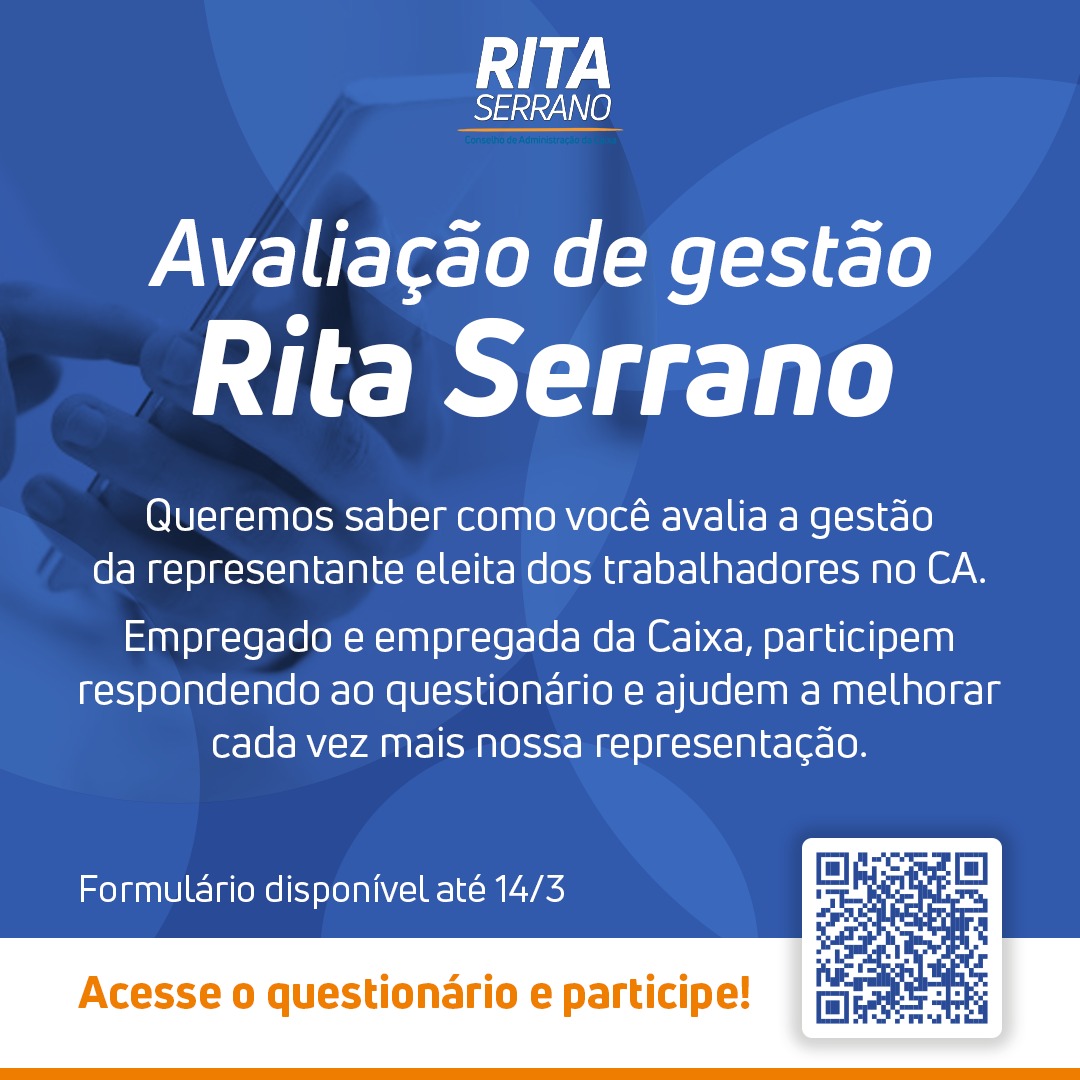 Participe da pesquisa de opinião sobre o mandato de Rita Serrano no CA