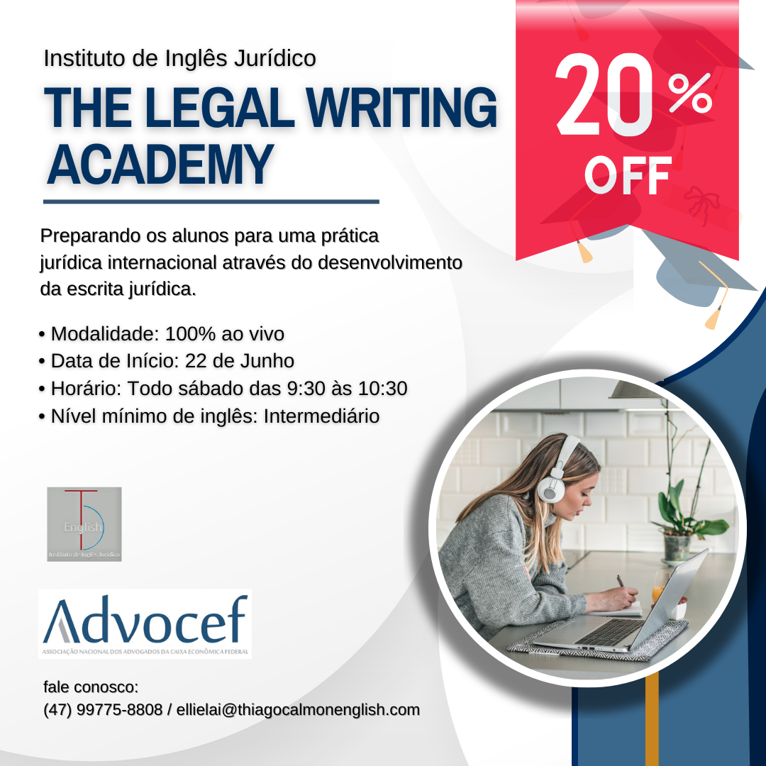 Que tal aprimorar sua escrita jurídica de forma prática e eficaz? No Instituto de Inglês Jurídico Thiago Calmon, estamos lançando o curso “The Writing Academy”, projetado especialmente para profissionais como você. Junte-se a nós para seis meses de aulas ao vivo e interativas, realizadas todos os sábados das 9h30 às 10h30. Nossas aulas síncronas proporcionam…